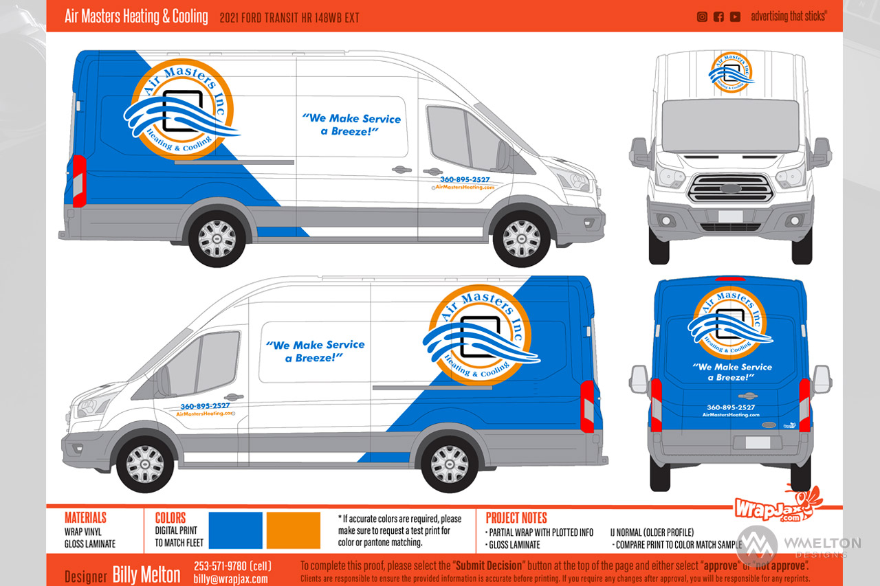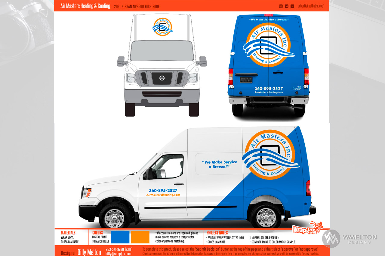 Mark with Air Masters needed a rehaul with a vibrant new look for his fleet of vehicles.